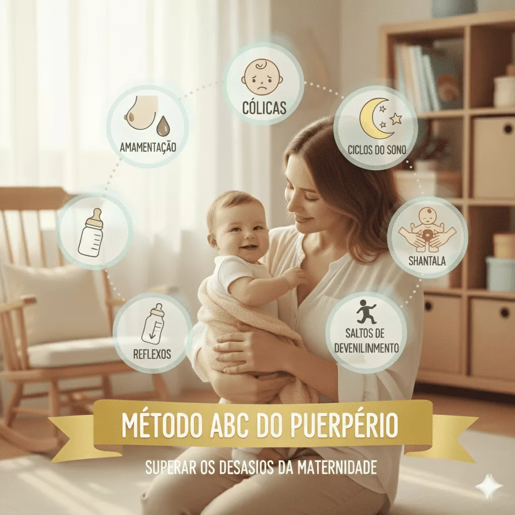 É um conjunto de práticas testadas, simples aplicáveis, diretas e acolhedoras que guiam a mãe a atravessar com mais leveza os primeiros 3 meses de vida do bebê — um período repleto de descobertas, desafios e transformações.